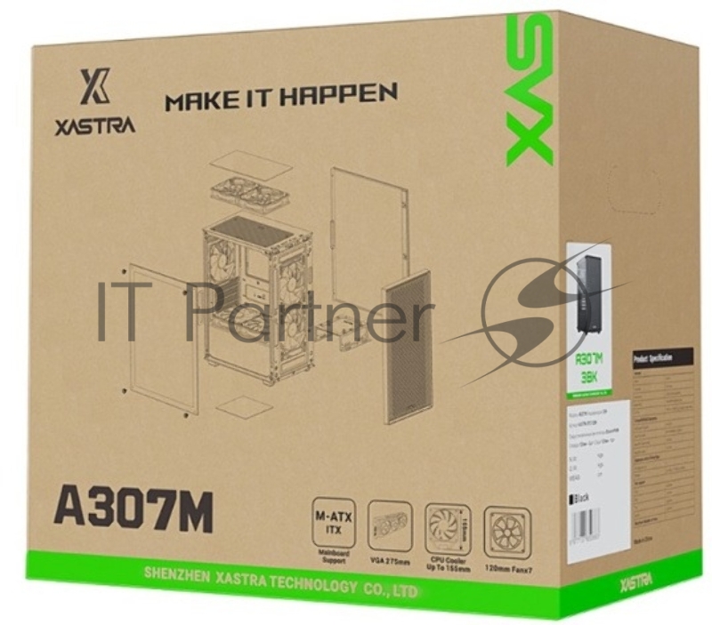 Компьютерный корпус XASTRA A307M 3BK Black mATX/Mesh/ tempered glass / 3x120mm PWM FC black fans/ A307M-3FC12BK