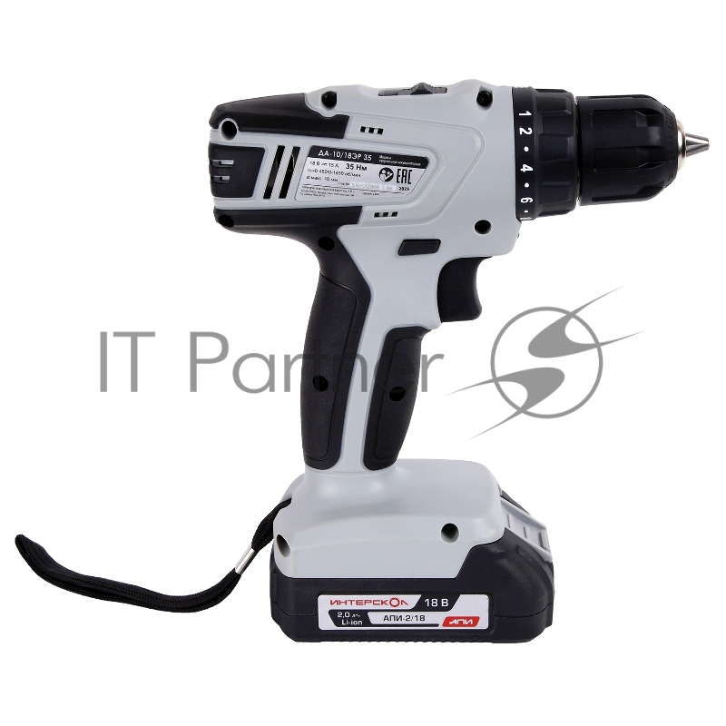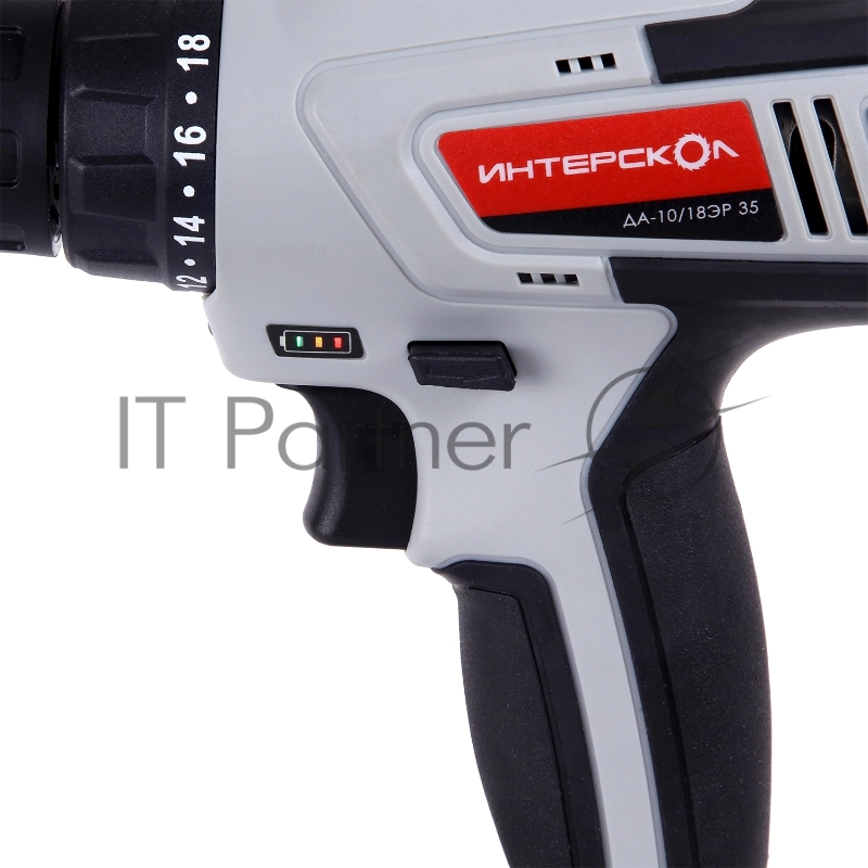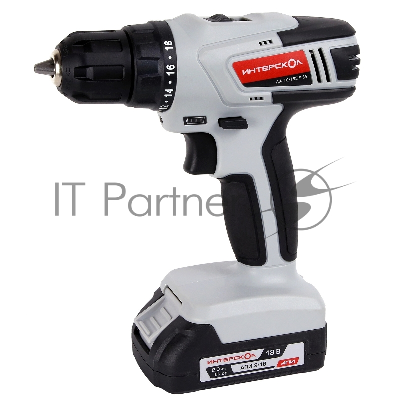 Аккумуляторная дрель-шуруповерт ИНТЕРСКОЛ ДА-10/18ЭР 35 ПРОМО, 18В, 1400 об/мин, с 2 АКБ 2 Ач и ЗУ