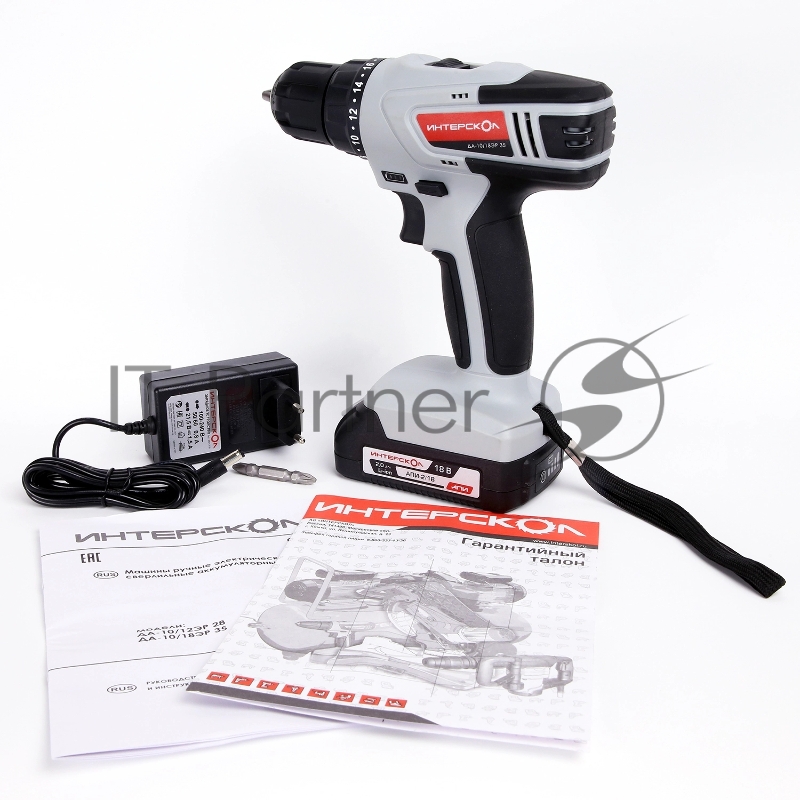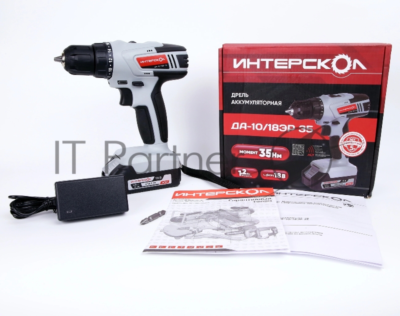 Аккумуляторная дрель-шуруповерт ИНТЕРСКОЛ ДА-10/18ЭР 35 ПРОМО, 18В, 1400 об/мин, с 1 АКБ 2 Ач и ЗУ