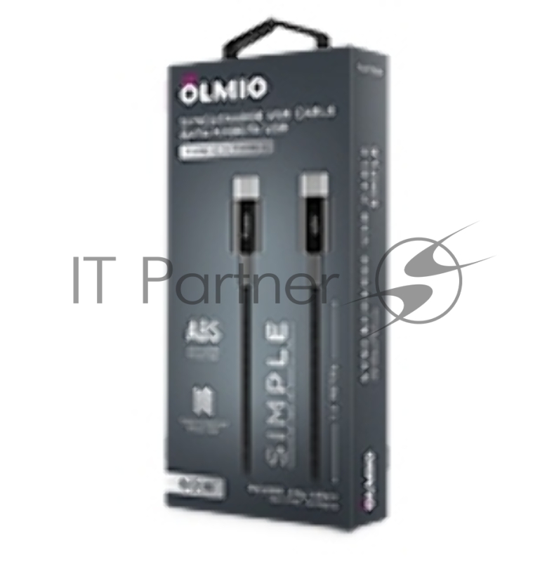 Кабель SIMPLE, Type-C - Type-C, 60W 3A, 1.2м, тканевая оплетка, черный, OLMIO