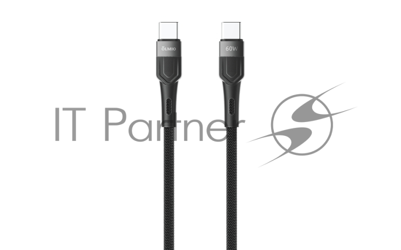 Кабель BOLT, Type-C - Type-C, 60W, 1.2м, тканевая оплетка, черный, OLMIO