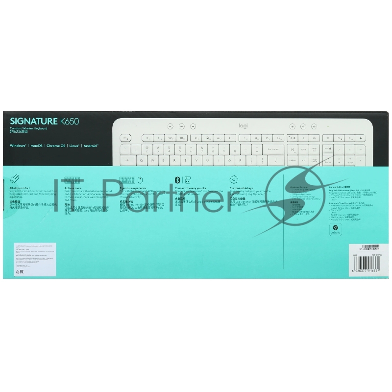 Клавиатура Logitech K650 белый USB беспроводная BT/Radio (подставка для запястий) (920-010986)