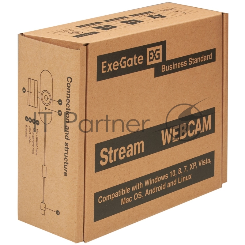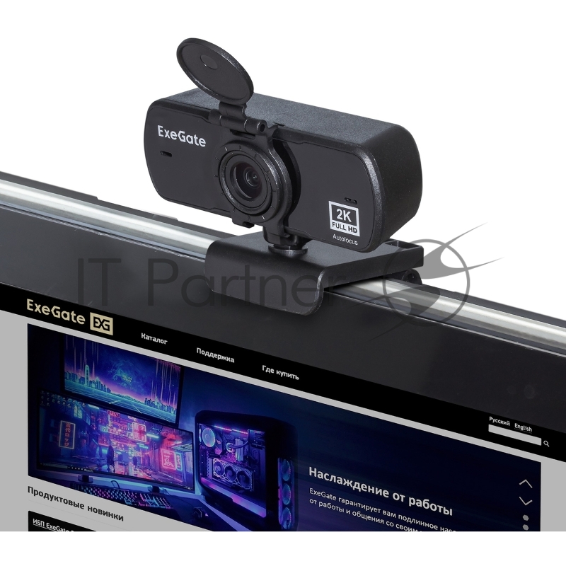 Веб-камера широкоугольная ExeGate Stream C940 Wide 2K AF (4Мп, 2560x1440, 30fps, поддержка H.264, автоматический фокус, защитная шторка, широкоугольный 4-линзовый (стекло) объектив 89°, микрофон с шумоподавлением, универсальное крепление, USB, кабель