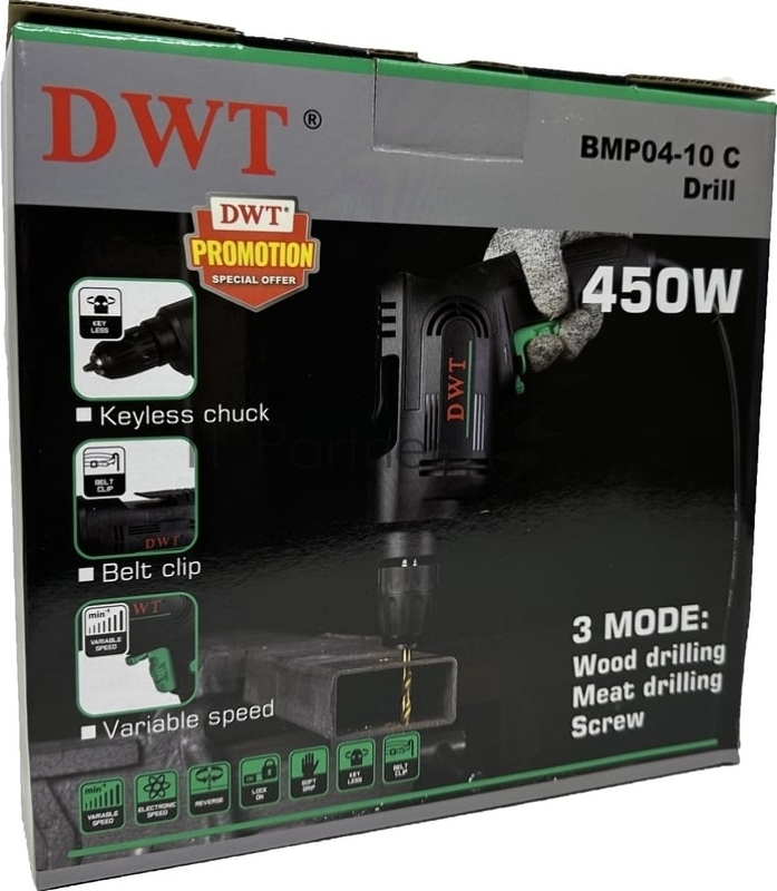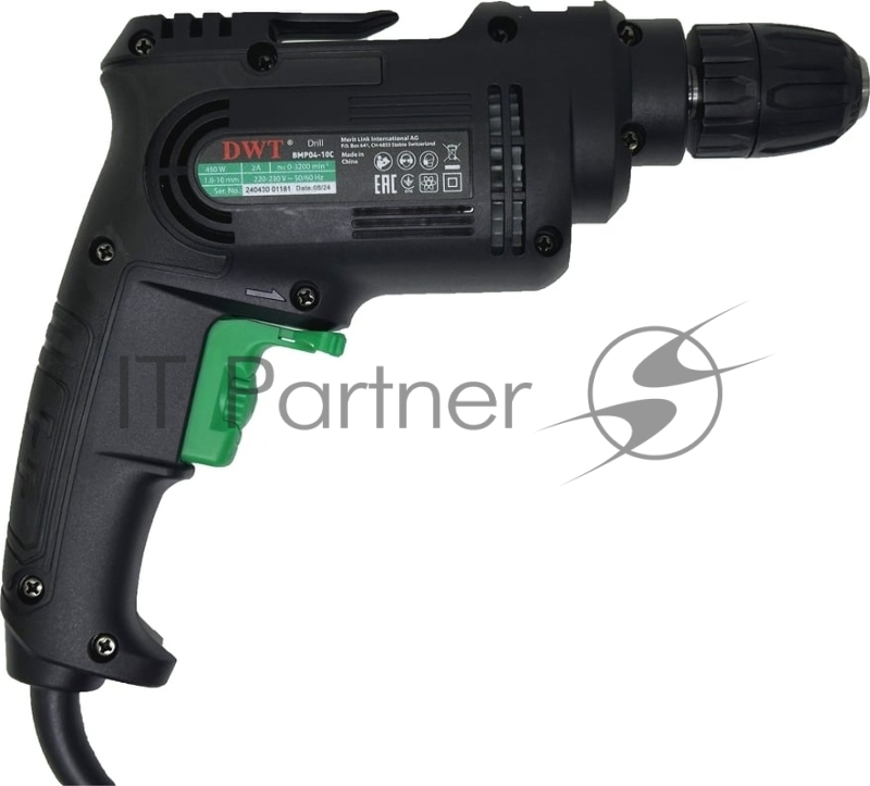 Дрель сетевая безударная DWT BMP04-10 C /450 Вт/до 3300 об.в мин/1.0-10 мм/реверс/кабель 2 м/черный (BMP04-10 C)