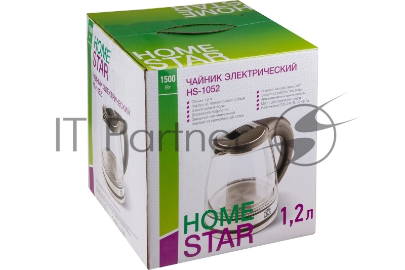 Чайник электрический Homestar HS-1052 (1,2 л.) стекло, пластик черный