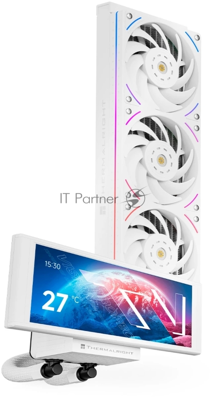 Водяное охлаждение для процессора Thermalright Trofeo Vision 360 (360mm, LED, White, ARGB/ Fans: 3x120mm, 69CFM, 27dBA, 2150RPM/ Pump height 102mm, 6400RPM, Rad thickness 27mm/ S: 1700, 1200, 1851, 115X, 2011, 2066, AM5, AM4)