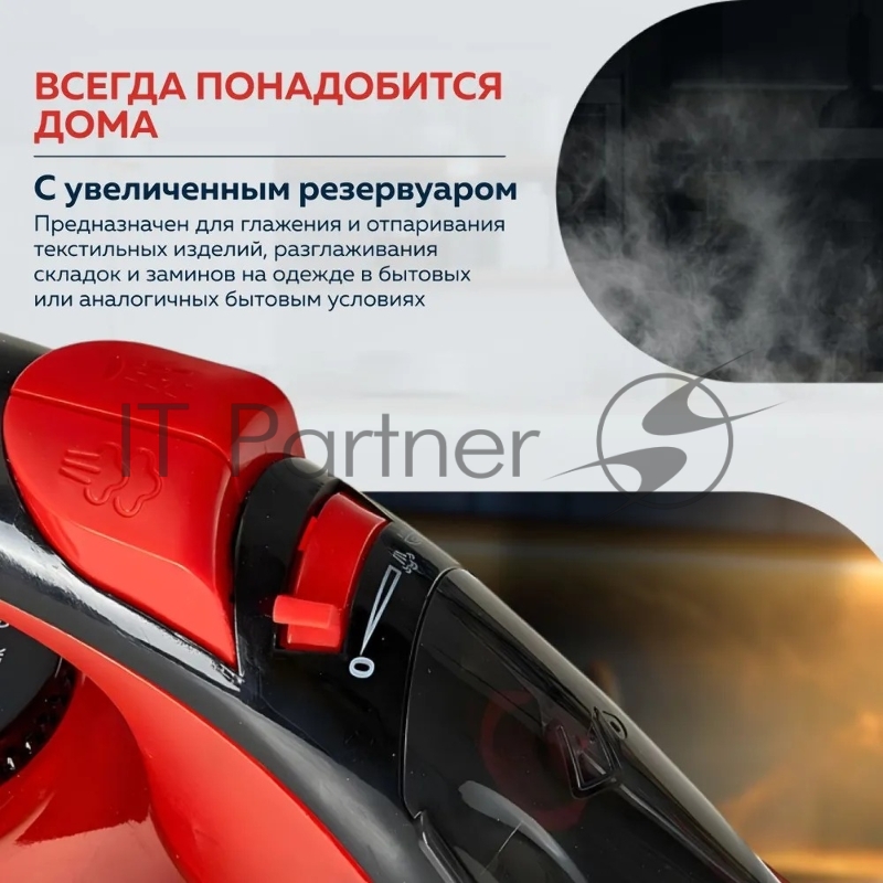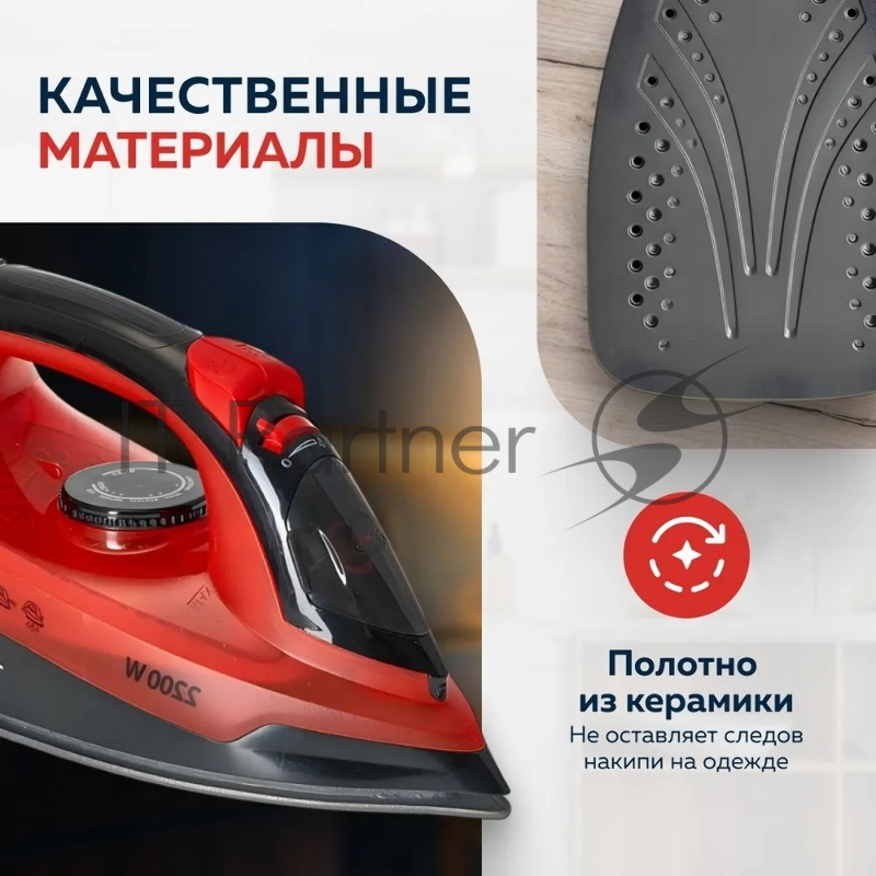 Утюг Аксинья КС-3004 черный с красным, 2200 Вт, 25 г/мин, 120 г/мин, 160 мл