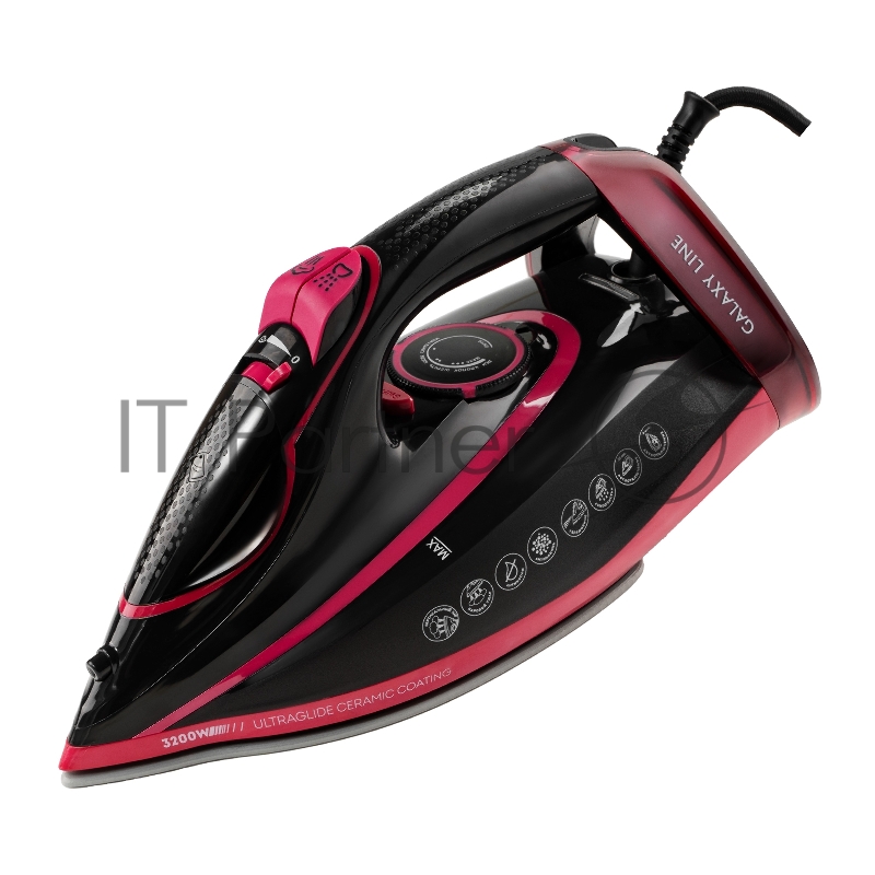 Утюг Galaxy GL 6133 черный/розовым, 3200 Вт, 80 г/мин, 240 г/мин, 320 мл