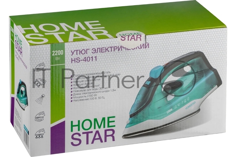Утюг Homestar HS-4011 бирюзовый, 2200 Вт, 25 г/мин, 150 г/мин, 300 мл