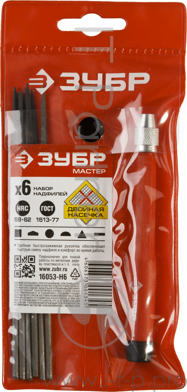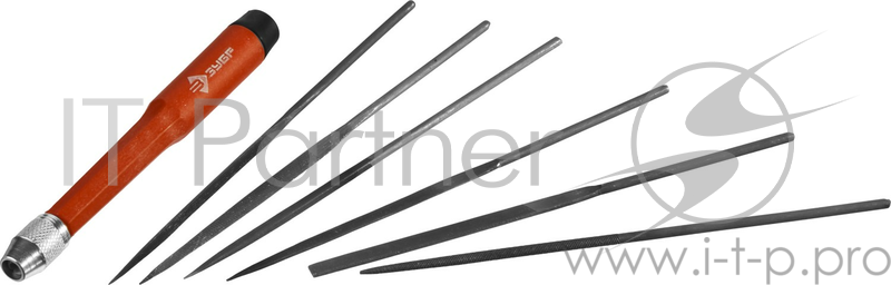 Ручной инструмент Набор ЗУБР МАСТЕР: Надфили с зажимной пластмассовой ручкой, 7предметов 16053-H6