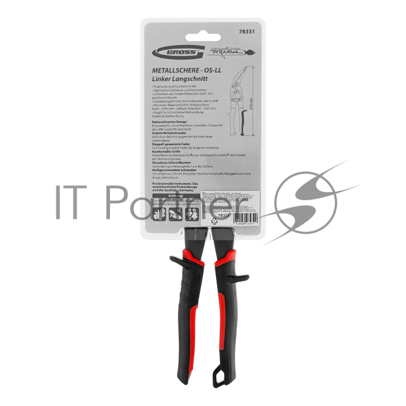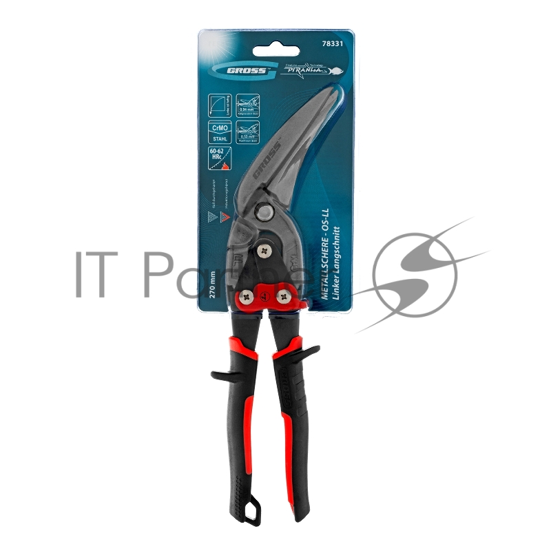 Ножницы по металлу GROSS 78331 270мм прямой и левый проходной резсталь-СrMo двухкомп.рук-ки
