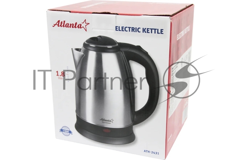 Чайник ATLANTA, ATH-2431 черн, нержавейка Металл, 1,8л, 1500Вт, стальной, фильтр от накипи, поворот на 360С, автомат откл, защита от перегрева без воды, .