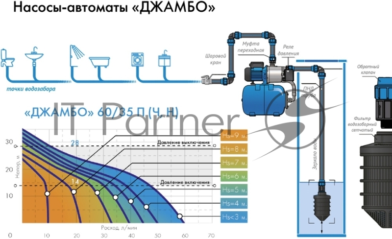 Насосная станция ДЖАМБО 60/35Н-24 600Вт глубина до 9м высота до 30м 3300л/ч 24л для чистой воды