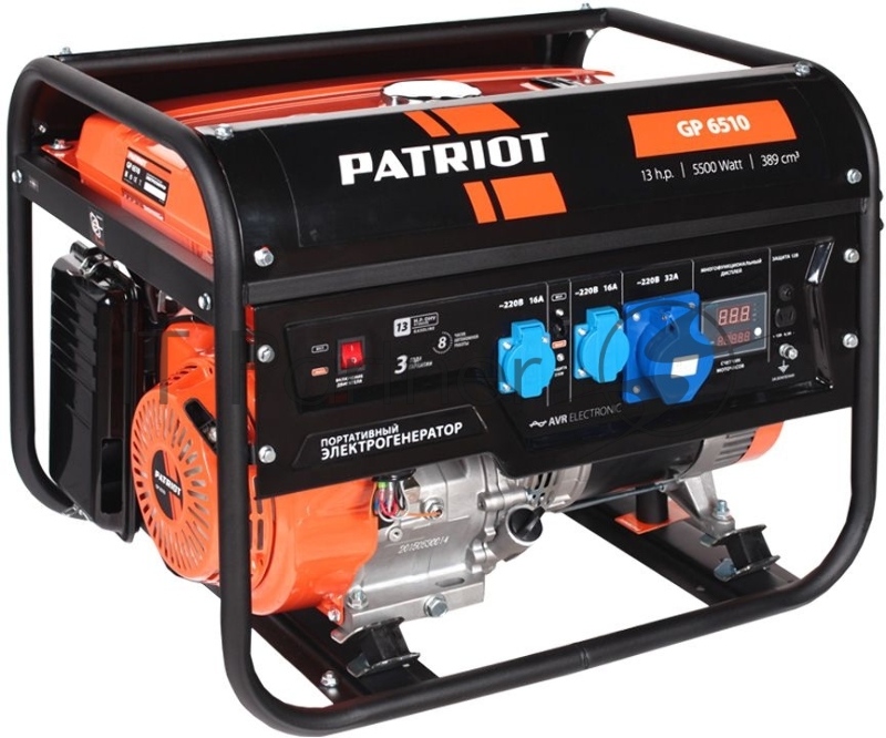 Генератор бензиновый PATRIOT GP 6510 [474101565] {Двигатель: 4т, OHV, АИ-92, 389 сс, 13 л.с; Мощность ном/макс: 5.0/5.5 кВт; Объём бака: 25 л; Розетк