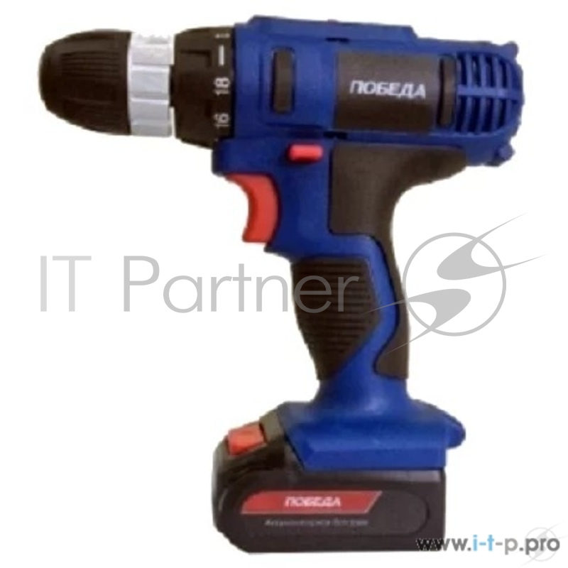 Дрель, Шуруповерт ПОБЕДА ДА-18/2 Ли Дрель-шуруповерт аккумуляторная 180201636 { 18В 38 нм быстрая зарядка 2 батареи кейс }