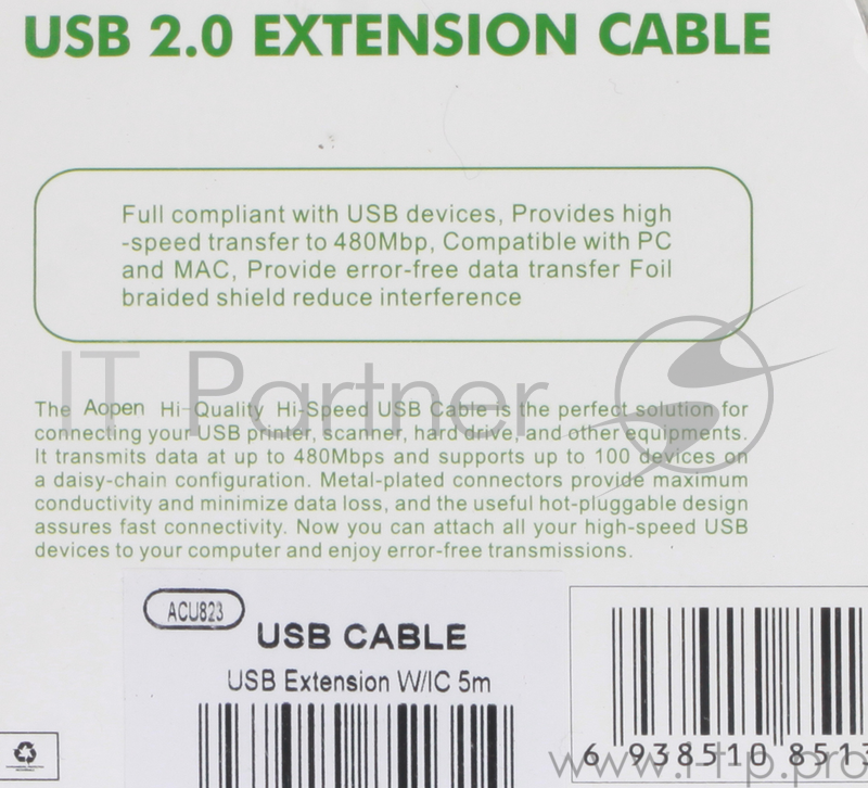 Кабель Aopen/Qust Кабель-адаптер USB2.0-repeater, удлинительный активный Am--Af 5м (ACU823-5M) 6938510851314
