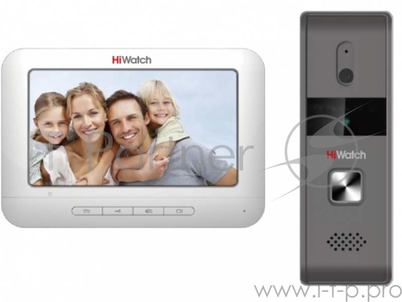 Комплект ового видеодомофона HiWatch DS-D100K Антивандальная вызывная панель с камерой разрешением 720 х 576 и ИК-подсветкой до 2м + 7 цветной TFT монитор 800х480, 4-х проводная схема, 12В DC, 5Вт макс., адаптер в комплекте