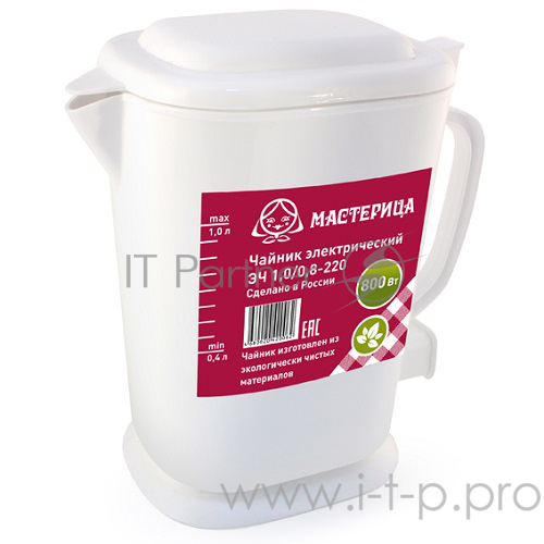 Чайник электрический Мастерица ЭЧ-1,0/0,8-220Б, пластиковый, белый, 1л, 500 Вт (в уп. 10 шт)