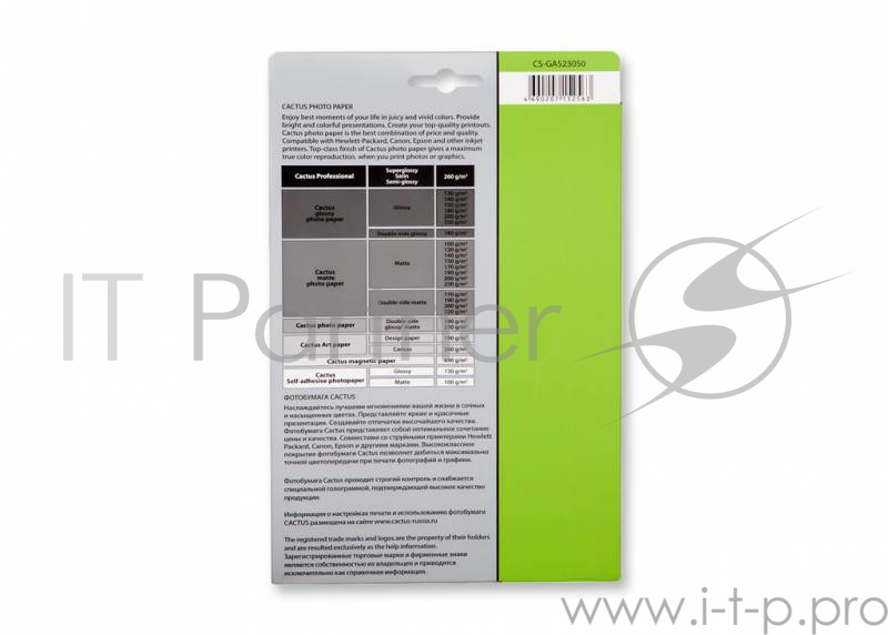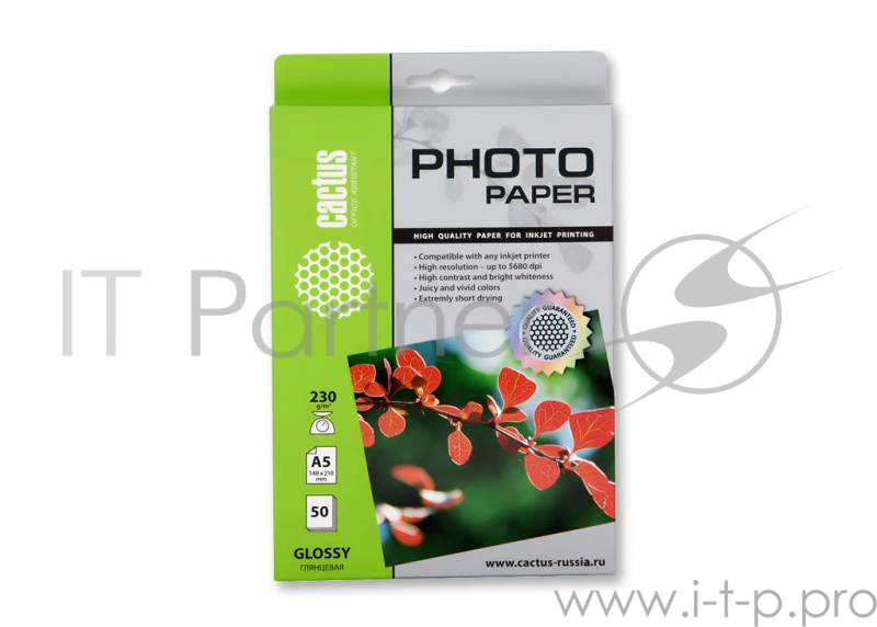Бумага CACTUS CS-GA523050 Фотобумага Cactus CS-GA523050 глянцевая, А5, 210*148мм, 230 г/м2, 50 листов