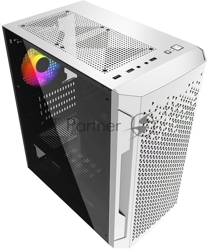 Корпус Powercase Mistral Micro Z3W Mesh LED, Tempered Glass, 2x 140mm + 1х 120mm 5-color fan, белый, mATX (CMIMZW-L3)