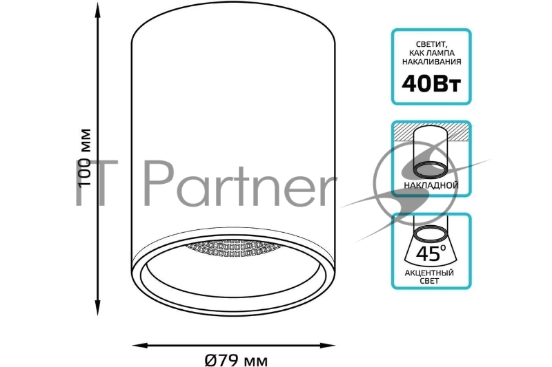Светильник светодиодный накладной HD007 12W (черный) 4100K 79x100мм | HD007 | Gauss