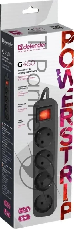 Удлинитель Defender с заземлением G450 Выключатель, 5.0 м, 4 розетки