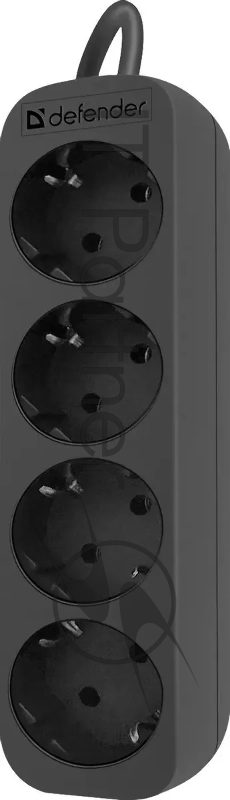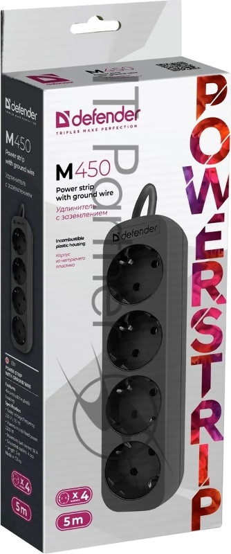 Удлинитель Defender с заземлением M450 5.0 м, 4 розетки, черный