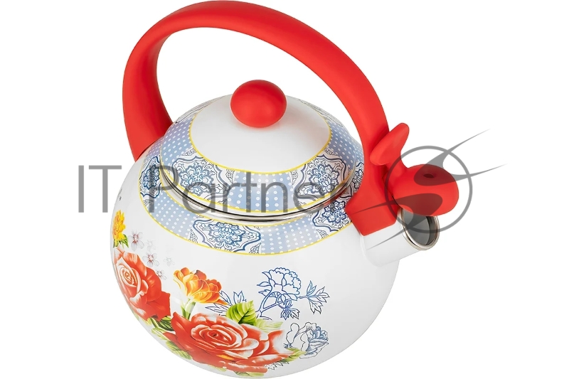 LR00-20 чайник LARA (эмаль) RED 2.5л, индукционное дно, свисток, автоподъем крышки