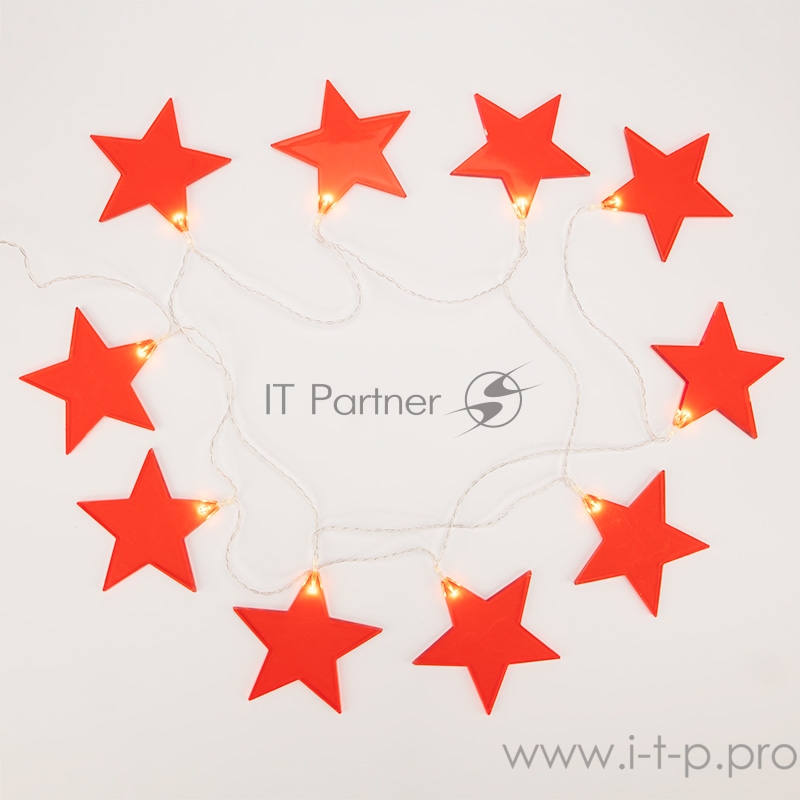 Гирлянда светодиодная «Звездопад» красная 10 LED, 2,25 м, прозрачный ПВХ, теплый белый свет свечения, 2 х АА (батарейки не в комплекте) NEON-NIGHT
