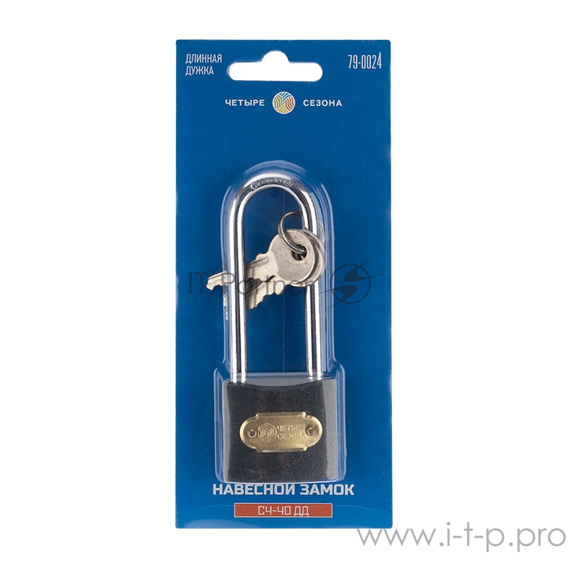 Замок навесной серия «Чугун» 40 мм длинная дужка ЧЕТЫРЕ СЕЗОНА