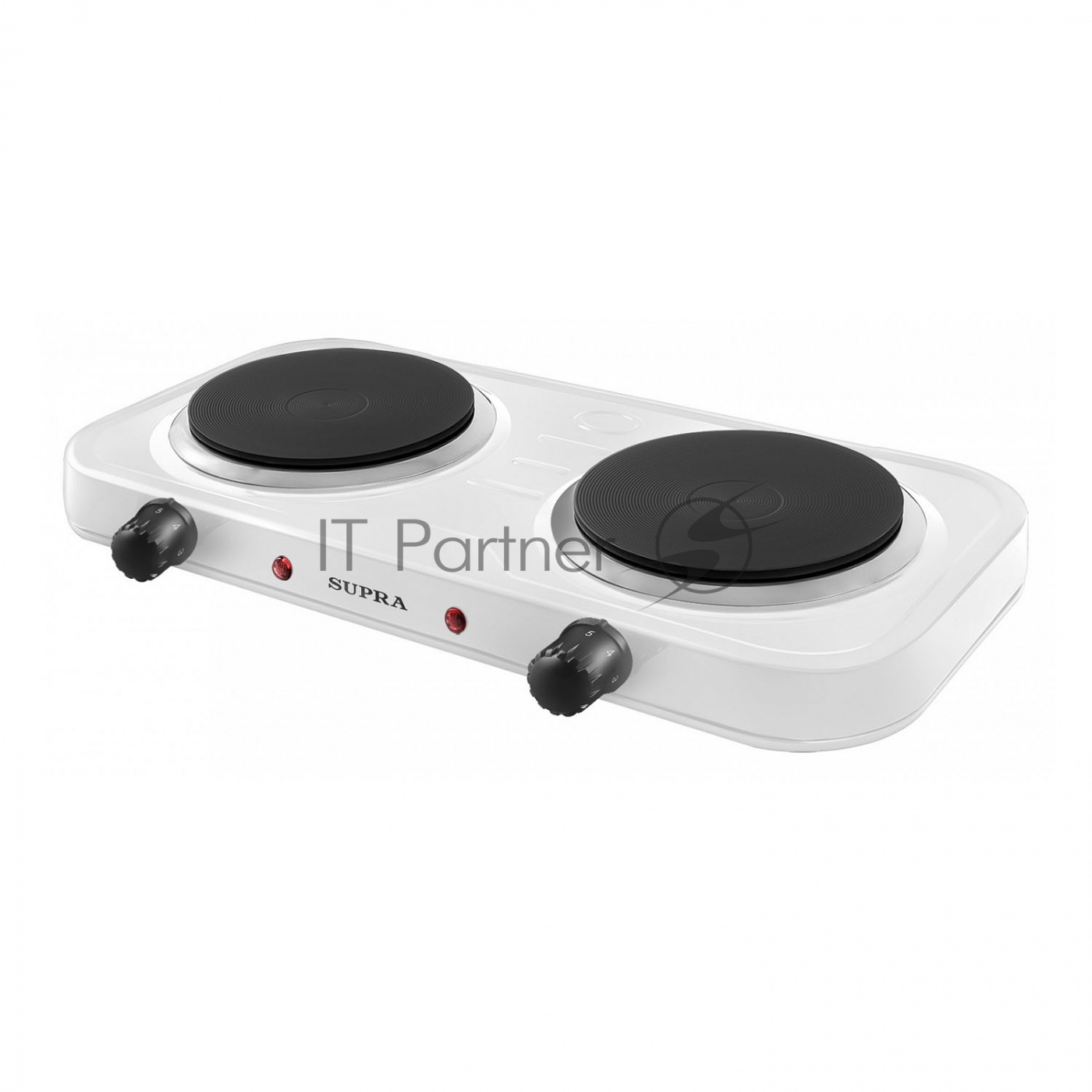 Электроплитка SUPRA HS-202 white (двухконфорочная. Мощность каждой конфорки - 1000 Вт диаметр конфорки – 15,5 см плавное регулирование температуры конфорки световая индикация эмалевое покрытие корпуса)
