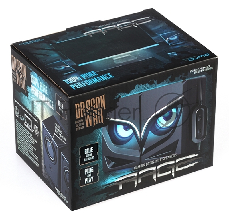 Колонки 2.0 Qumo Rage AS005, 10 ВТ, объемное звучание, синяя подсветка (отключаемая), USB+Jack 3,5мм