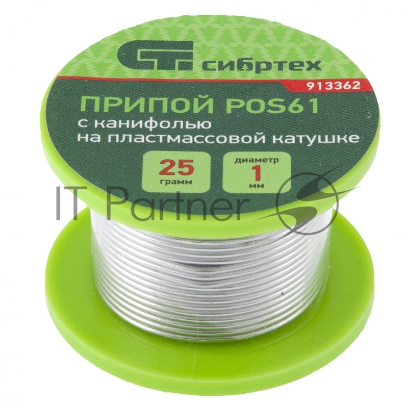 Припой с канифолью СИБРТЕХ , D 1 мм, 25 г, POS61, на пластмассовой катушке // Сибртех 913362