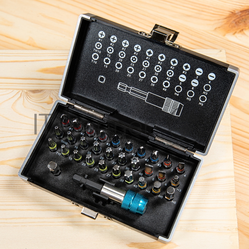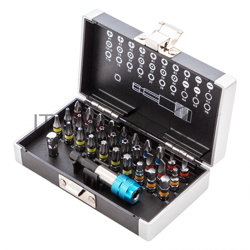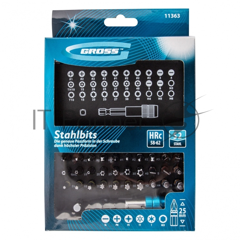 Набор бит GROSS , магнитный адаптер,сталь S2,пластиковый кейс,32 предм.// 11363