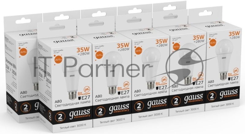 Лампа светодиодная Gauss Globe Elementary 35Вт цок.:E27 груша 220B 3000K св.свеч.бел.теп. А67 (упак.:1шт) (70215)