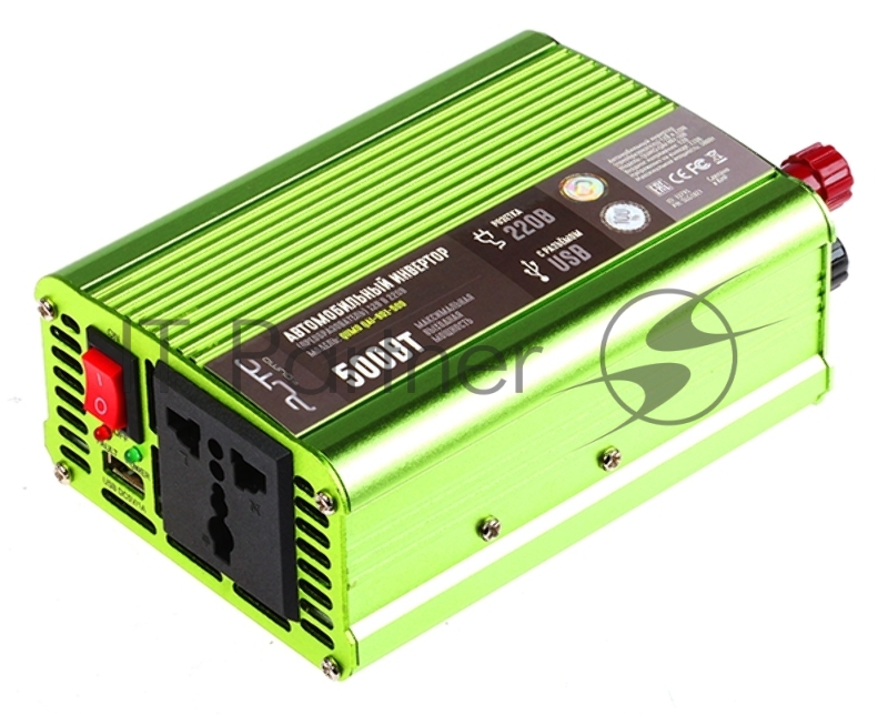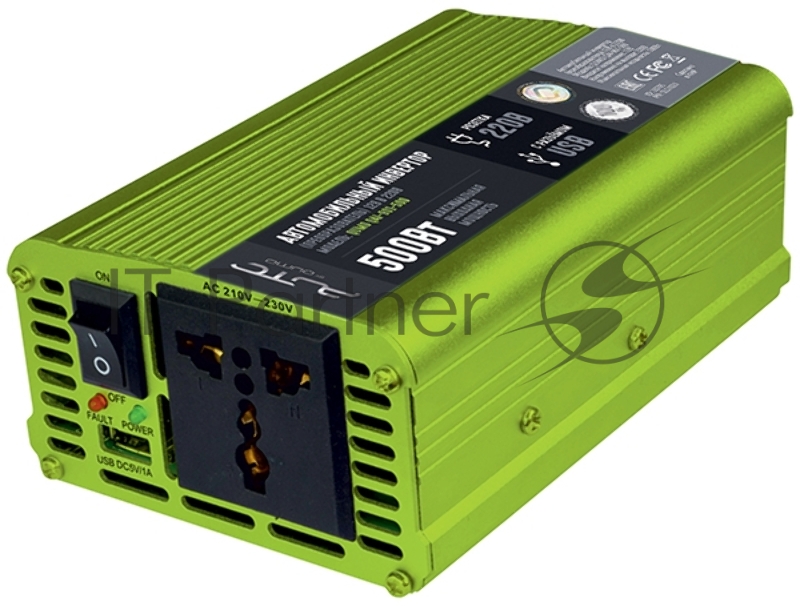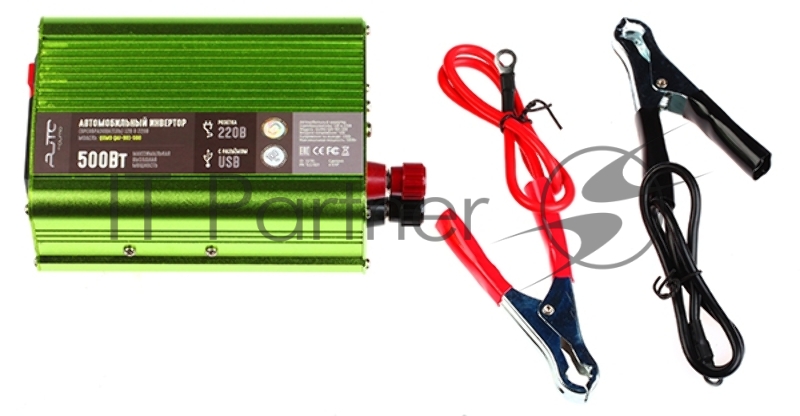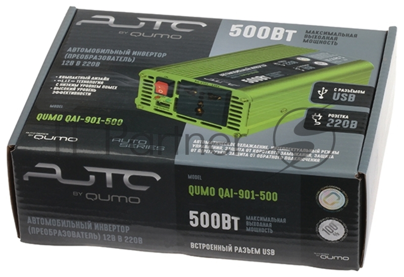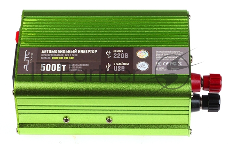 Автомобильный инвертор (преобразователь) постоянного тока 12В в переменный ток 220В, модель QUMO QAI-901-500 (Inv 001), максимальная выходная мощность 500Вт, встроенный разъем USB