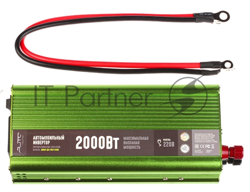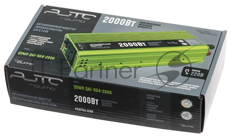 Автомобильный инвертор (преобразователь) постоянного тока 12В в переменный ток 220В, модель QUMO QAI-904-2000 (Inv 004), максимальная выходная мощность 2000Вт