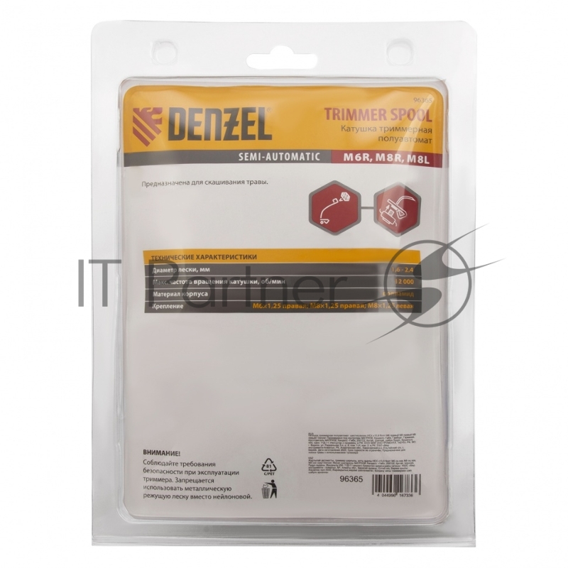Катушка триммерная полуавтомат шестигранник DENZEL HEX х15,6 болт М6 правый М 96365