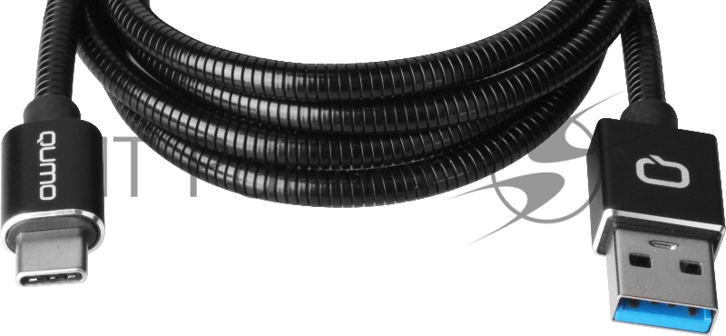 Кабель Qumo Type-С кабель, 1м, USB 3.0, 5В, 3А, 15Вт, металлическая оплетка, металлический коннектор, черный