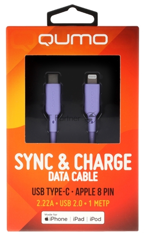 Кабель QUMO, MFI С94, Type-C на MFI Apple 8 pin, силиконовый, 1м, 2,22A, 9V, 20W, PD (фиолетовый)