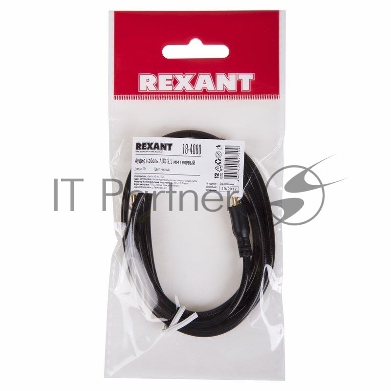 Аудиокабель AUX 3.5 мм гелевый 1 м черный REXANT
