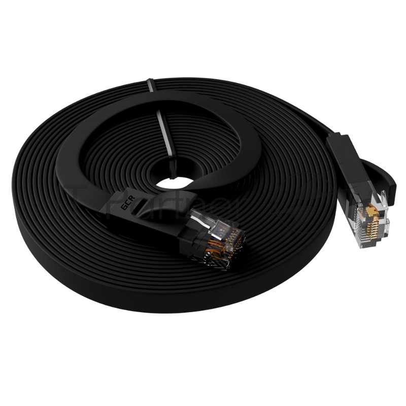 Патч-корд Greenconnect PROF плоский прямой 10.0m, UTP медь кат.6, черный, позолоченные контакты, 30 AWG, GCR-LNC616-10.0m, ethernet high speed 10 Гбит/с, RJ45, T568B