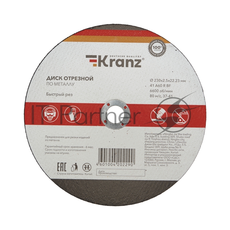 Диск отрезной по металлу (230х2.5х22.23 мм) Kranz