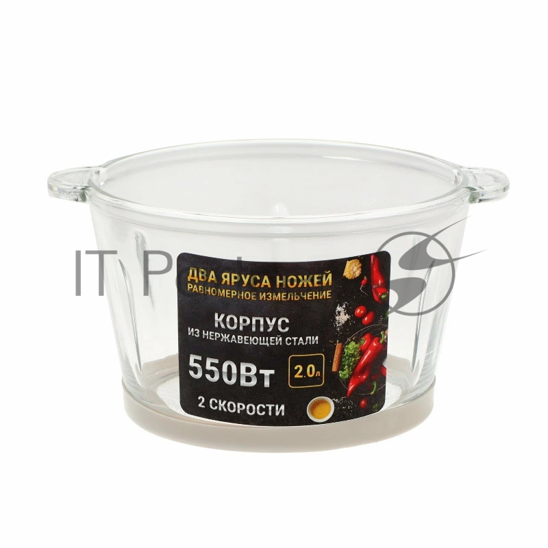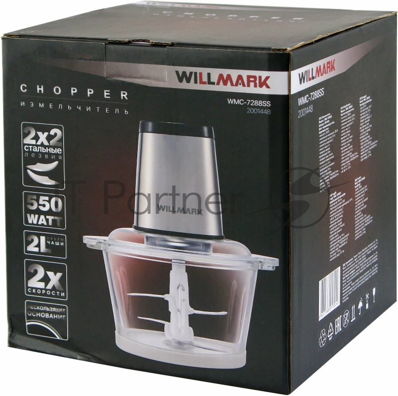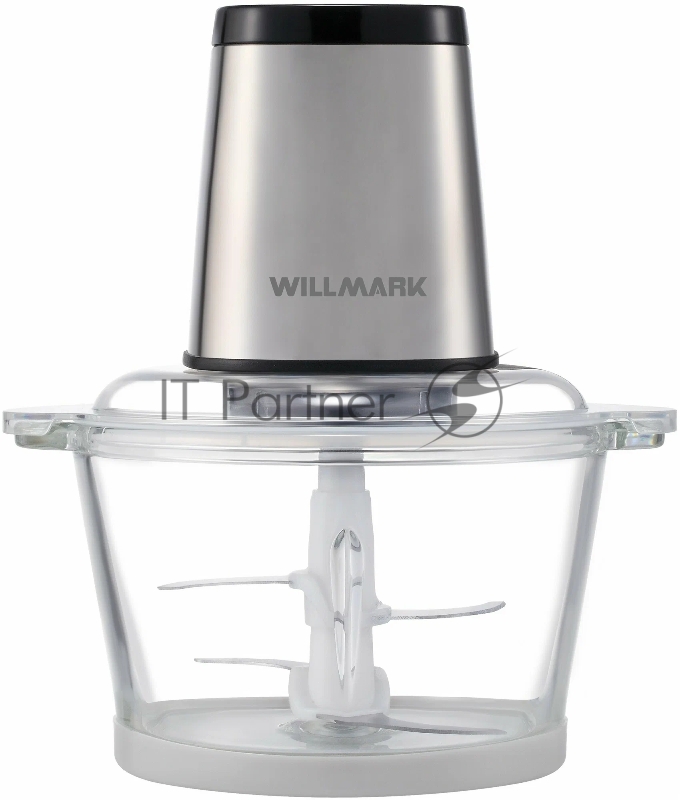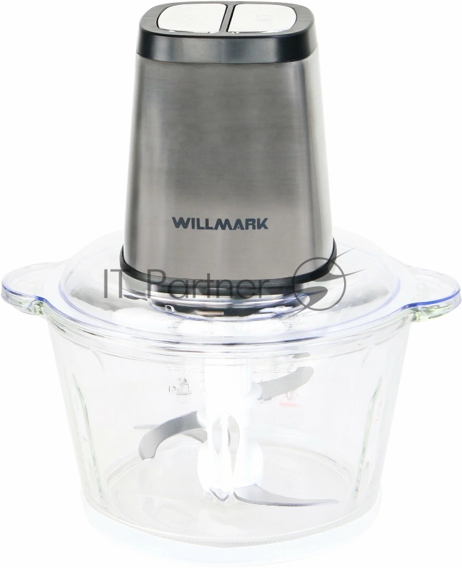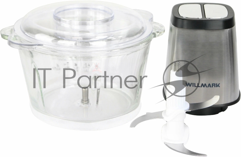 Измельчитель WILLMARK WMC-7288SS (550Вт., стекл. чаша 2л., рез. основ, корпус нержав. сталь, чёрный)