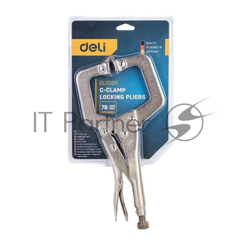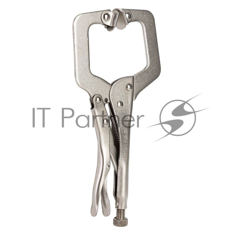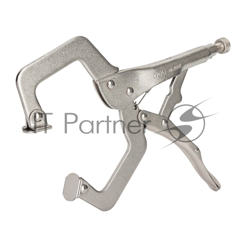 Зажимные клещи С-образные с фиксатором Deli DL20011 Рабочий ход 78 мм. Материал высокоуглеродистая сталь CrMo. Регулировочный винт. Быстросъёмная ручка.