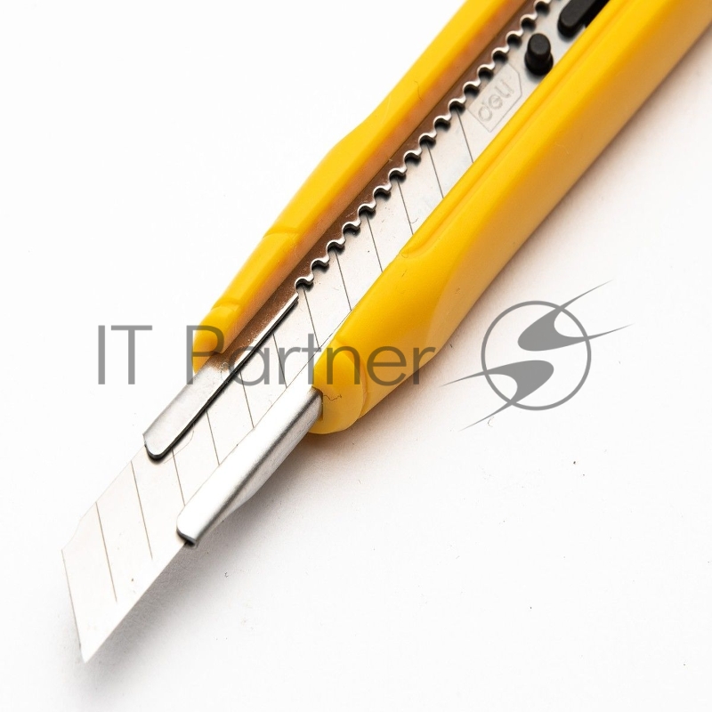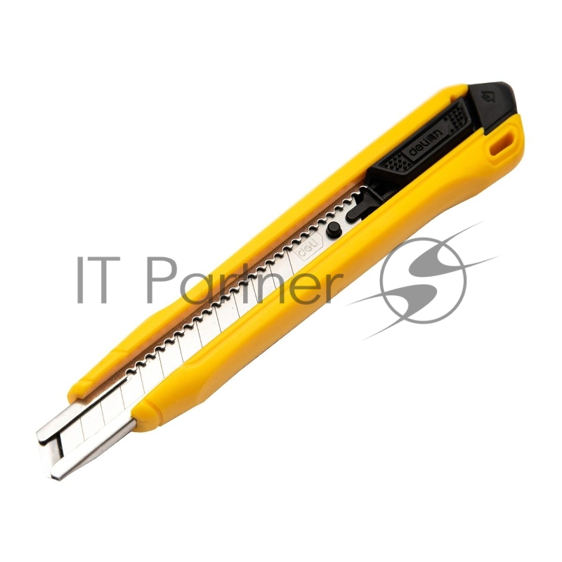 Технический нож Deli DL009B 9мм SK4, лезвие 13 секций, ударопрочный корпус. Кнопка автоматической блокировки.