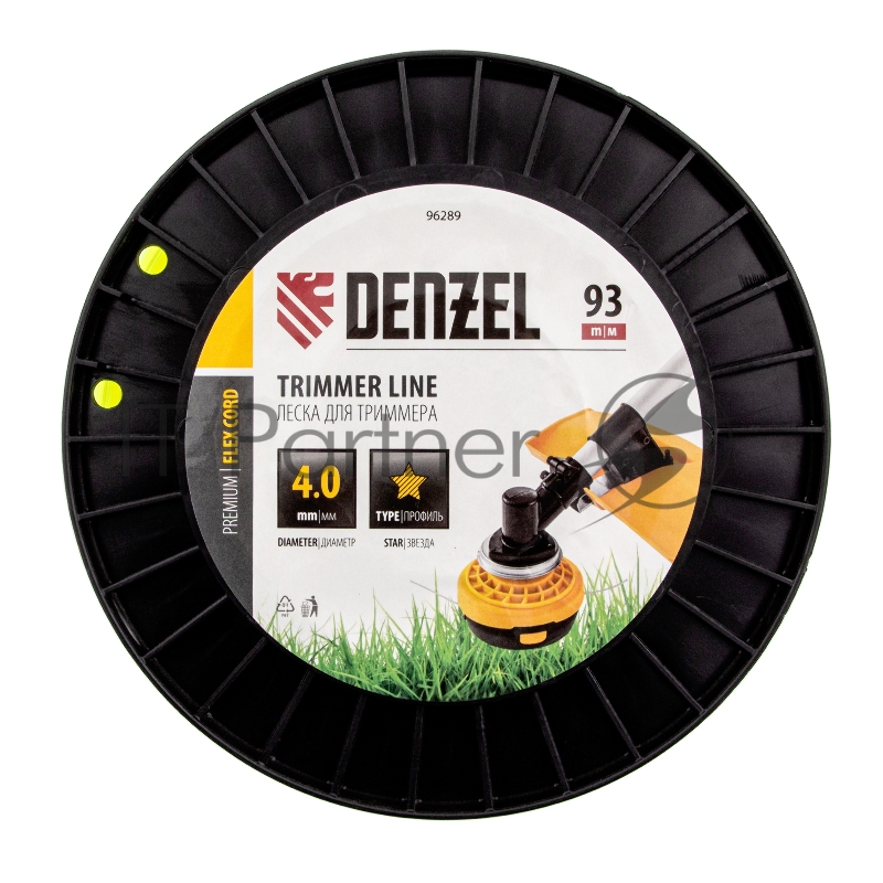 Леска для триммера звезда, 4,0мм х 93м, на DIN катушке FLEX CORD// Denzel