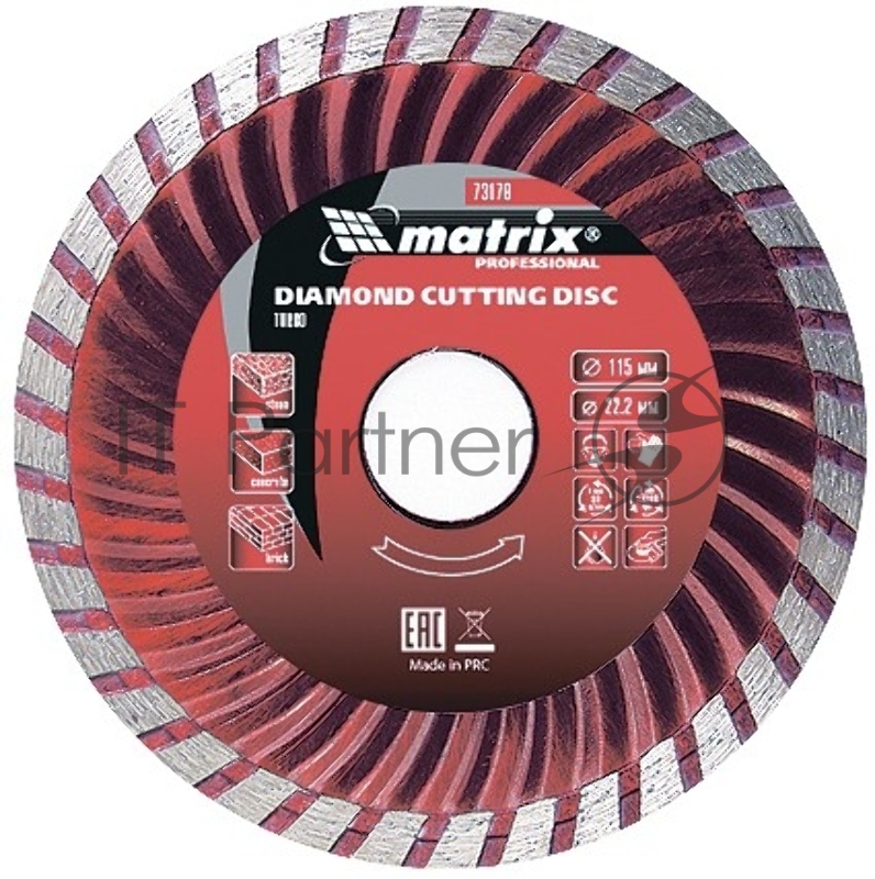 Диск алмазный отрезной Turbo, 115 х 22,2 мм, сухая резка// Matrix