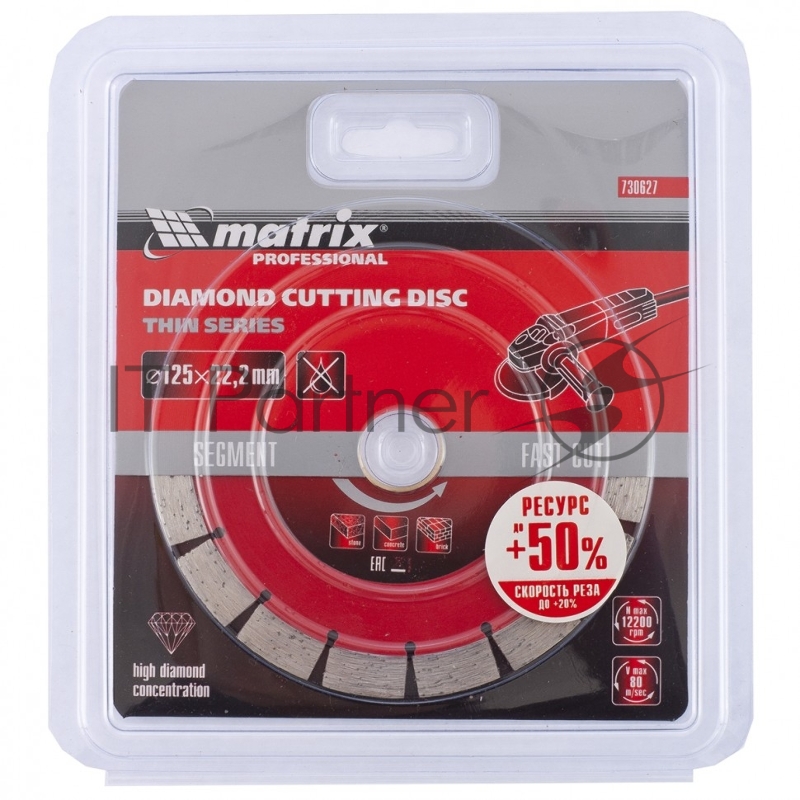 Диск алмазный отрезной сегментный ф125х22,2мм, тонкий, сухое резание// Matrix