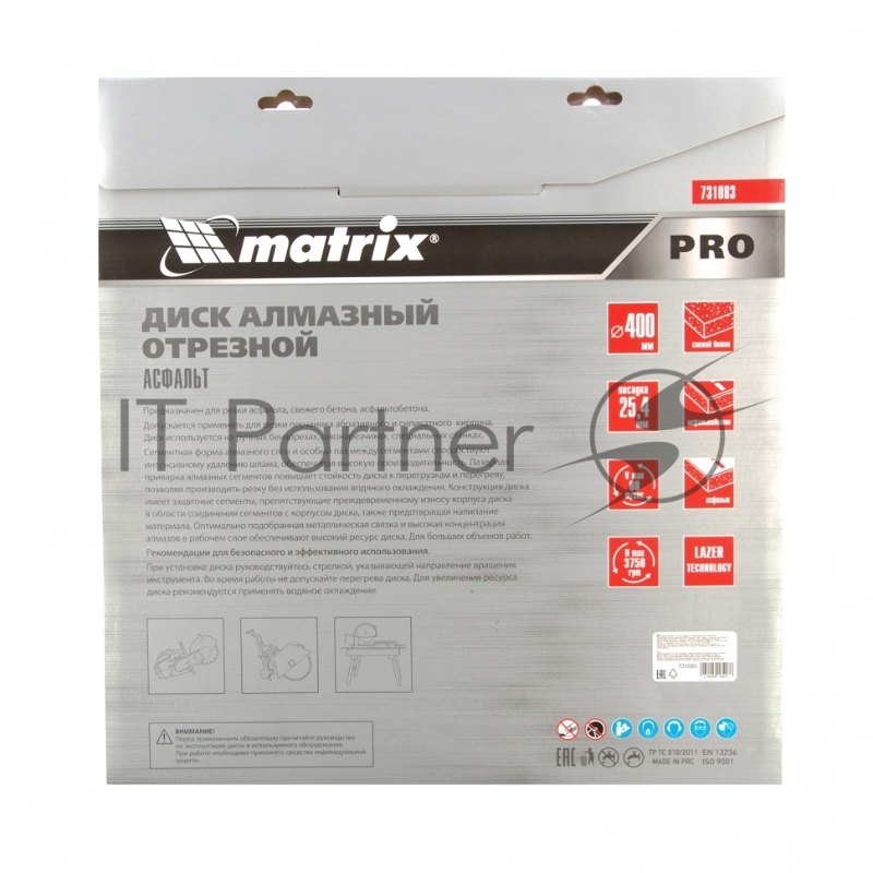 Диск алмазный ф400 х 25,4 мм, Асфальт, сухой/мокрый рез, PRO// Matrix
